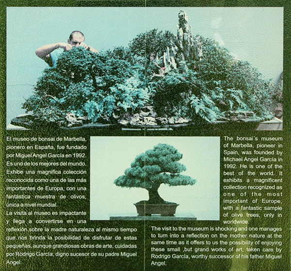 Das Museo del Bonsái in der südspanischen Provinz Málaga beherbergt die bedeutendste Bonsai-Sammlung des Landes. Es wurde 1992 von Miguel Angel García gegründet und besitzt eine große Anzahl wilder Oliven. Im April 2012 hatte ich die Möglichkeit, das Museum zu besuchen.